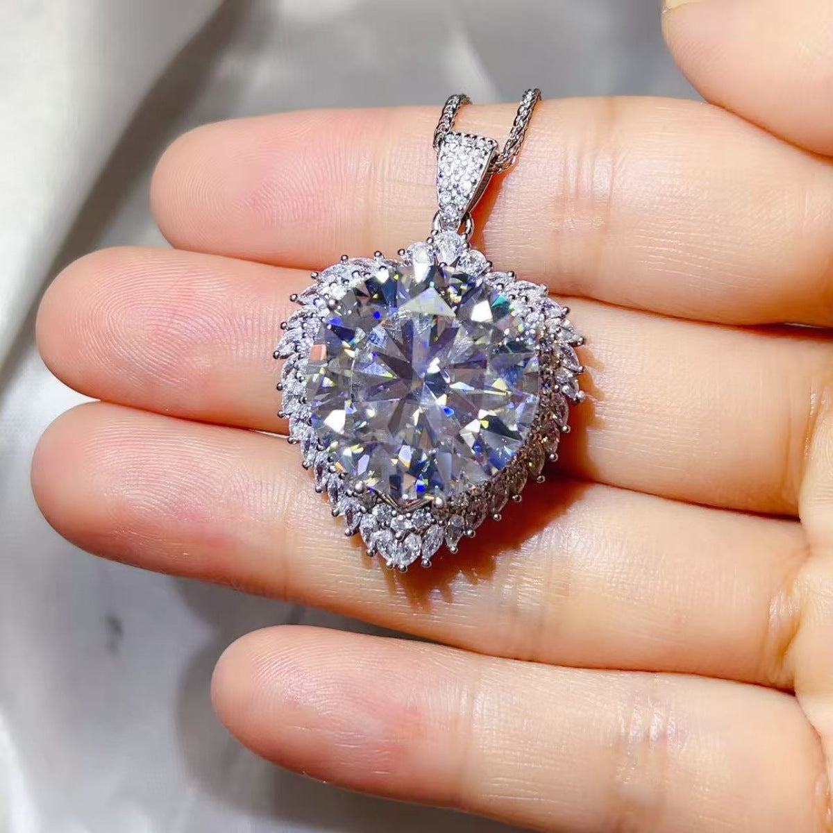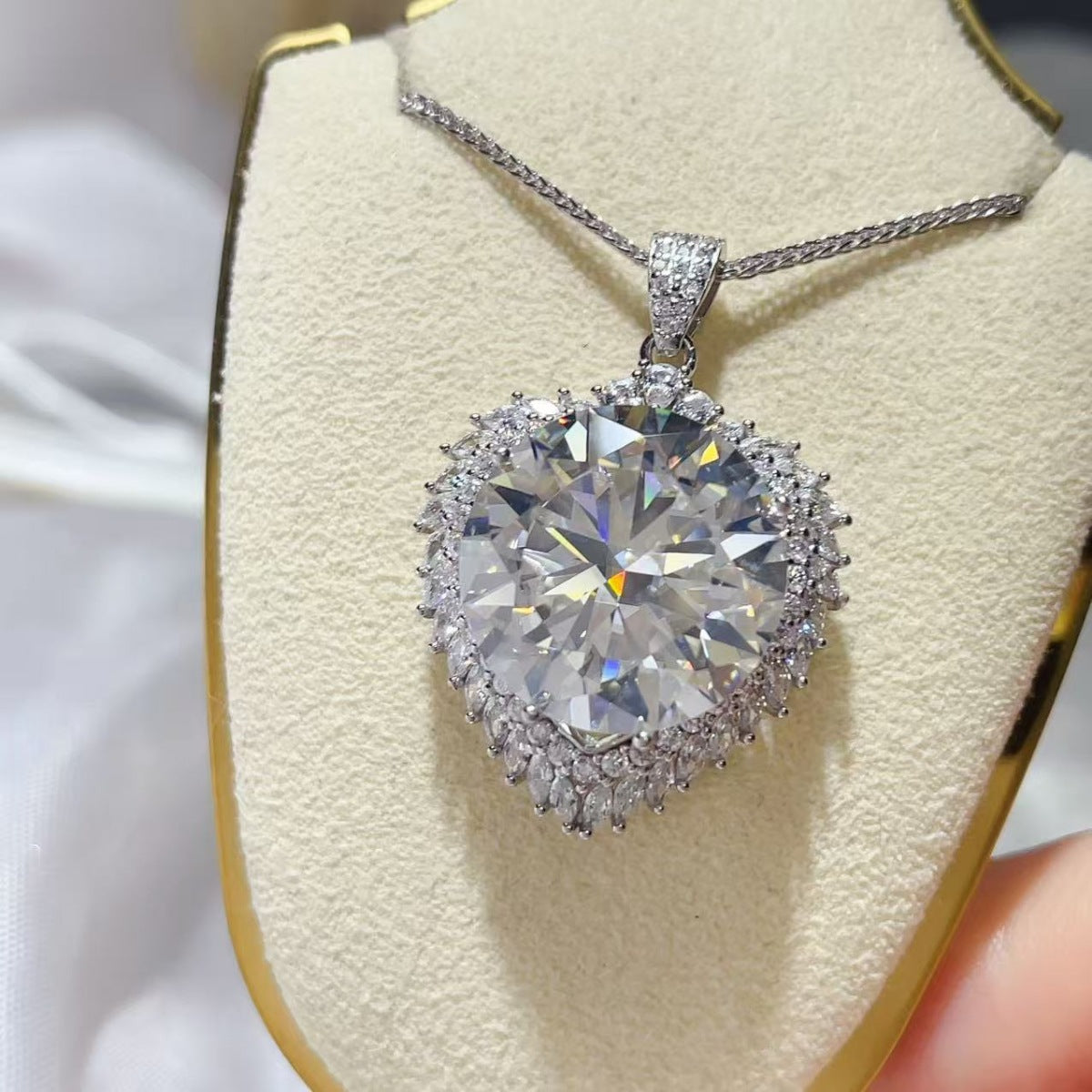20 Carat Moissanite 925 Sterling Silver Pendant Necklace